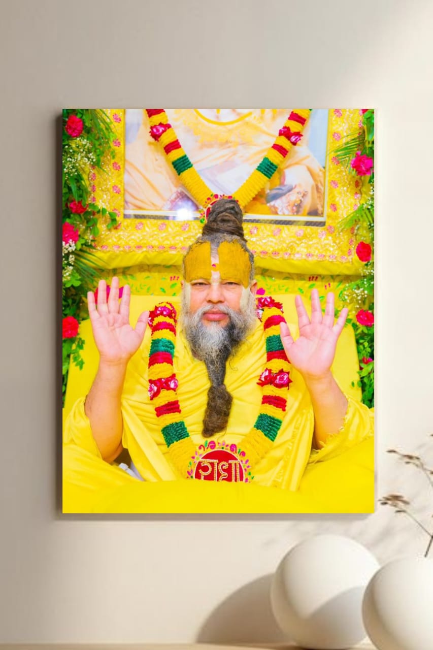 "Premanand Maharaj – Devoties poster with Floral Garland"